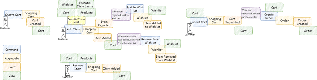 Let’s take an all-time favorite example of a shopping cart in Sales bounded context. Following are some of the key events identified by the team: