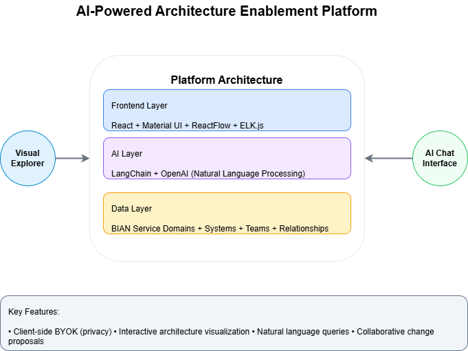 In the world of software development, we often talk about eating our own dog food. But what about using AI to build AI-powered tools? That’s exactly what I set out to explore in my latest project – an Architecture Enablement Platform that uses AI to help teams understand and interact with complex banking architectures.