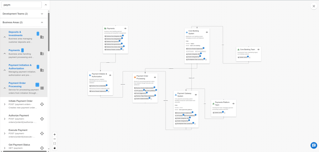 Enterprise architecture, especially in banking, has always been a complex beast. The Banking Industry Architecture Network (BIAN) provides a comprehensive framework, but understanding how these abstract concepts map to real systems and teams is challenging. Add to this the natural evolution of systems and teams (Conway’s Law in action), and you have a perfect storm of complexity.